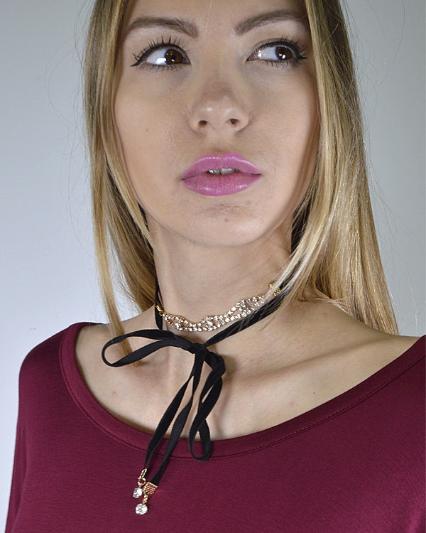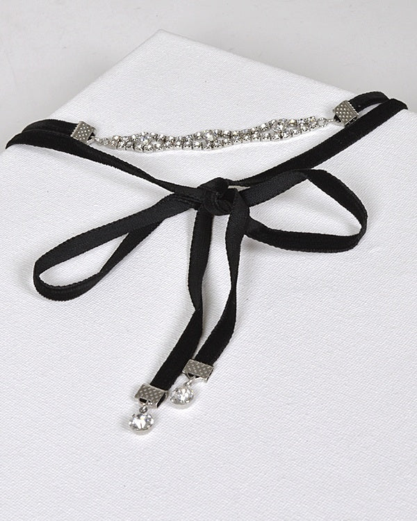 Layered Rhinestone Detailing and Tie Up Pattern Choker Necklace