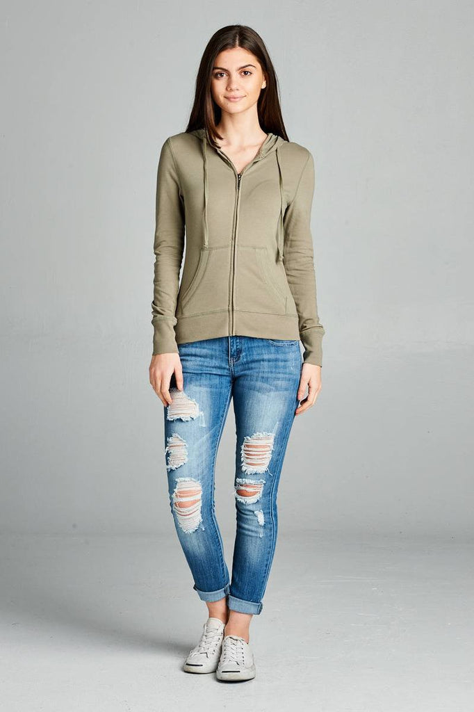 Ladies fashion plus size full zip-up closure hoodie w/long sleeves and lined drawstring hood