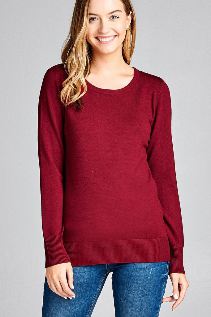 Ladies fashion long sleeve crew neck classic sweater