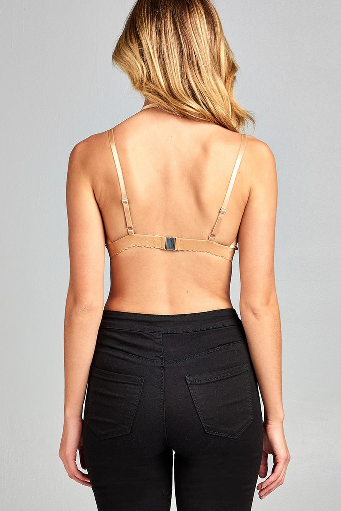 Ladies fashion front double strap w/elastic hem lace bralette