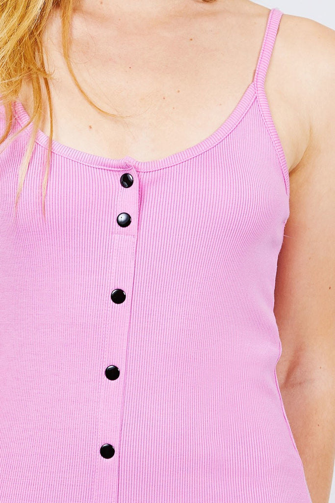 Front Snap Button Detail Strap Rib Cami Mini Dress