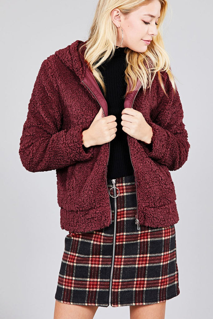 HOODIE SIDE POCKET FAUX FUR ZIP-UP JACKET