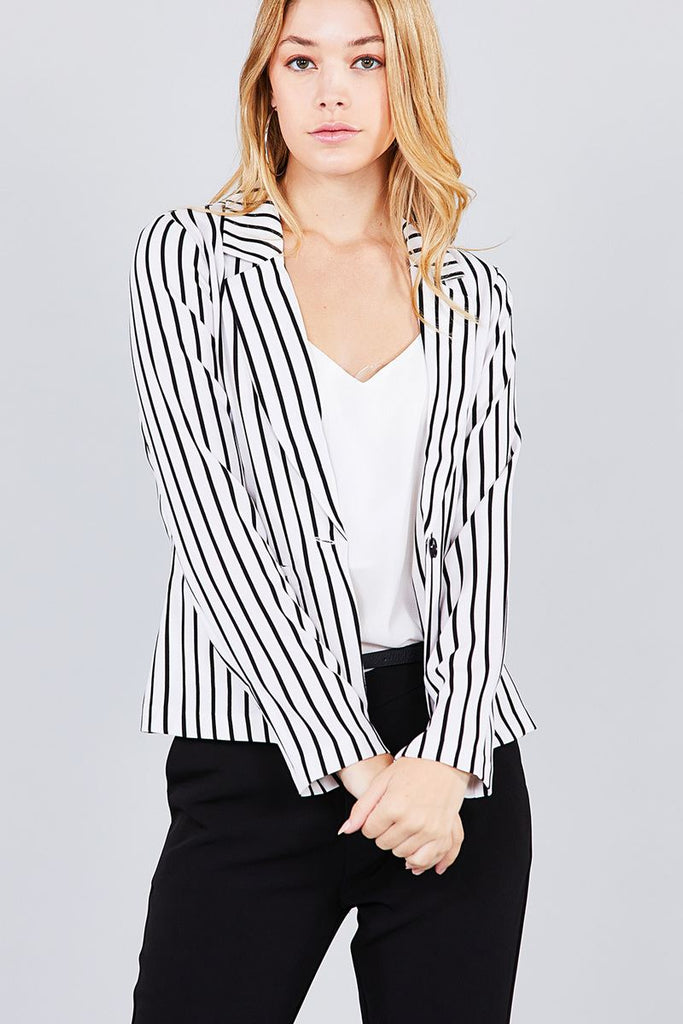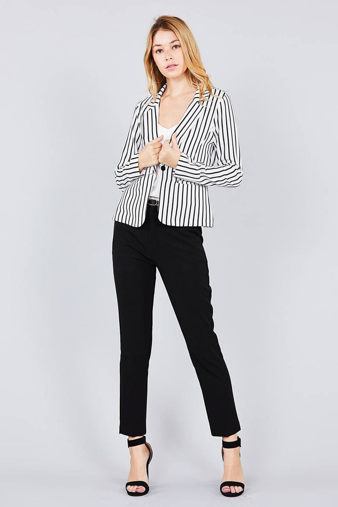Long sleeve notched collar princess seam w/back slit striped jacket