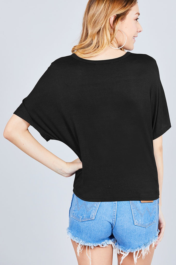 Short Dolman Sleeve V-neck W/button Detail Front Tie Rayon Spandex Cardigan