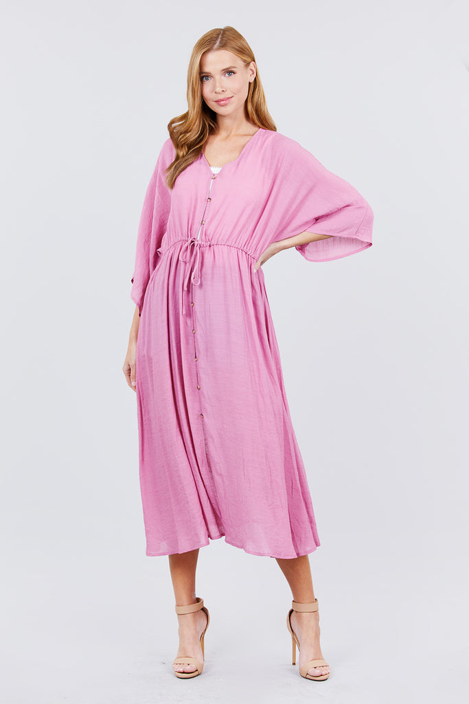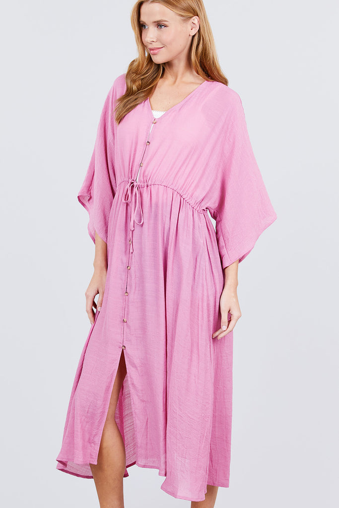 Elbow Sleeve Waist Ribbon Tie Button Down Long Woven Cardigan