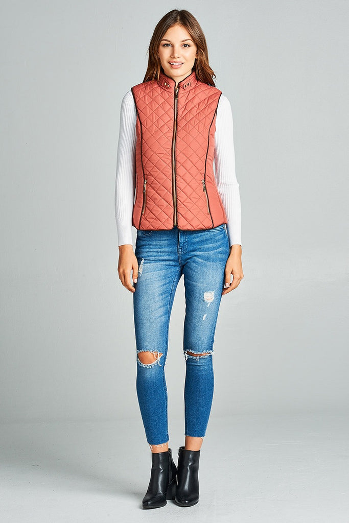 FAUX SHEARLING LINED QUILTED PADDING VEST