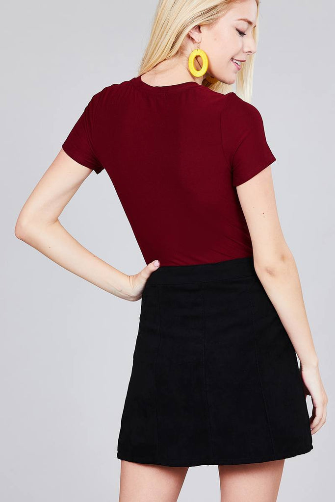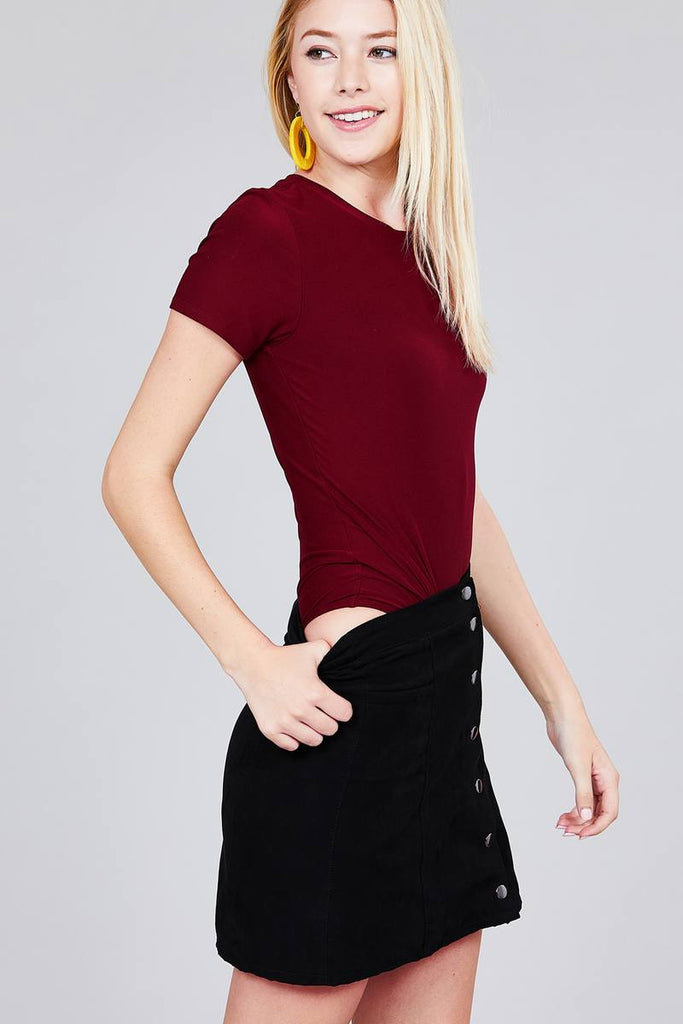 Ladies fashion short sleeve crew neck dty brushed bodysuit
