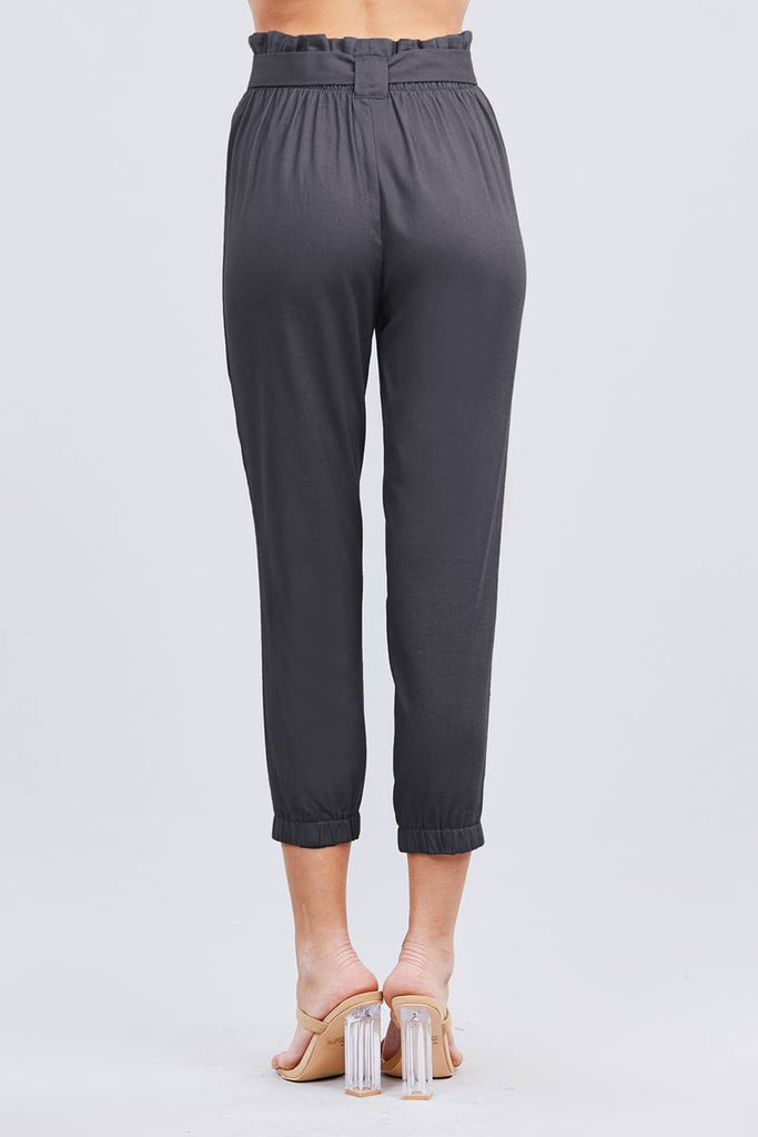 Paperbag W/bow Tie Elastic Hem Long Linen Pants