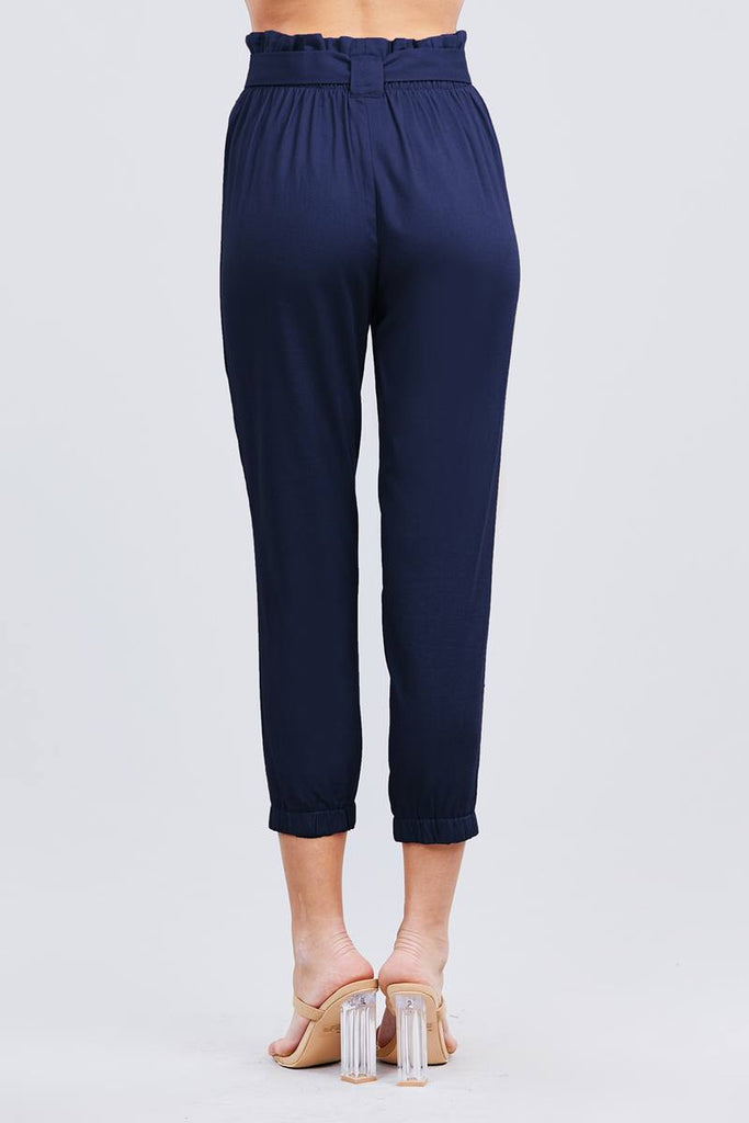 Paperbag W/bow Tie Elastic Hem Long Linen Pants
