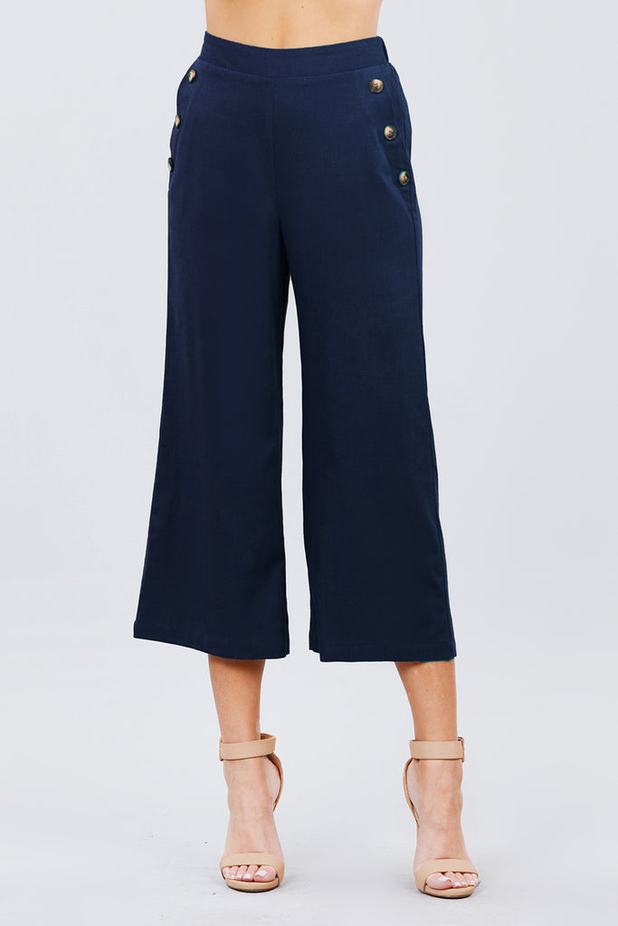 Fake Pocket W/button Detail Wide Long Leg Linen Pants