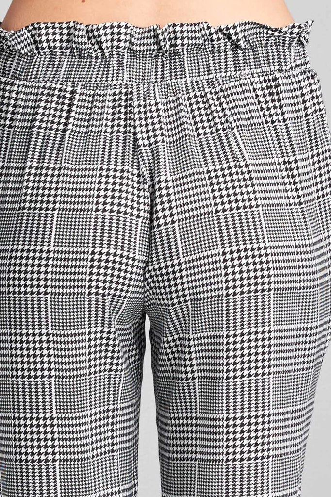 Ladies fashion plus size self ribbon detail long leg checked print woven pants