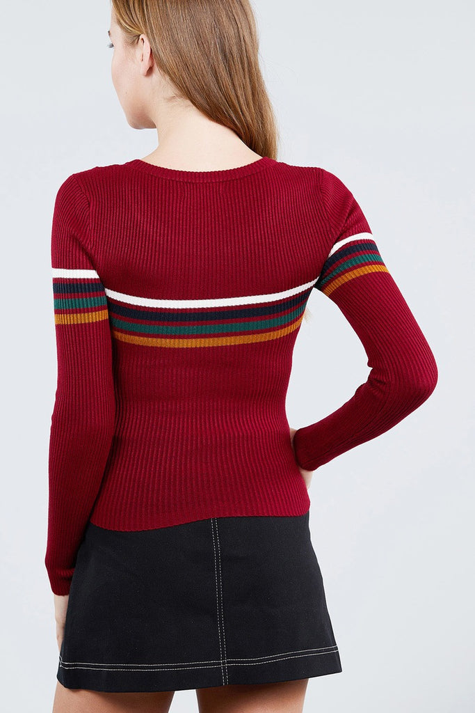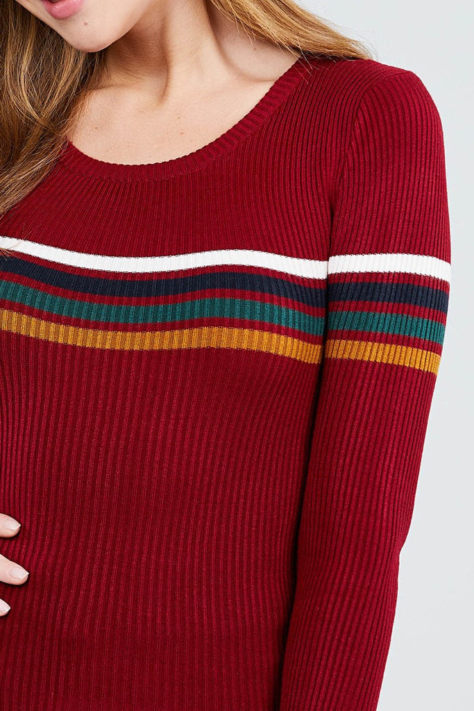 LONG SLEEVE ROUND NECK STRIPE SWEATER TOP