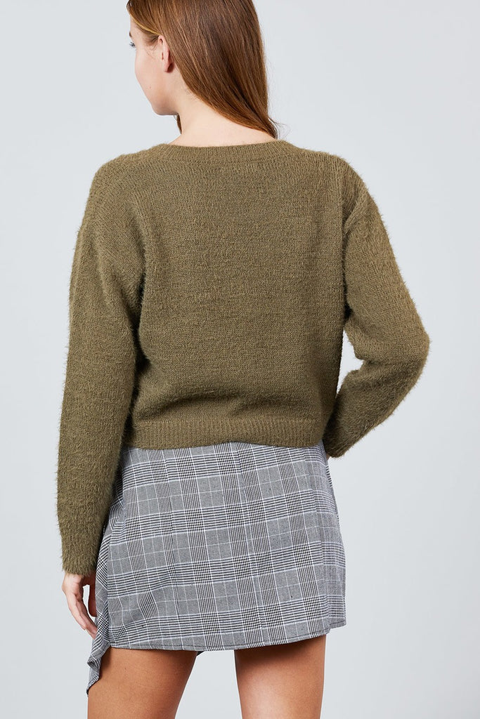 LONG SLEEVE ROUND NECK CROP SWEATER