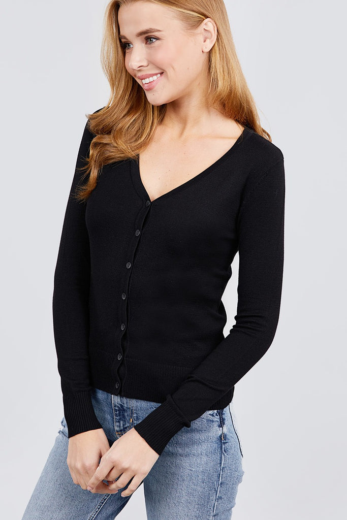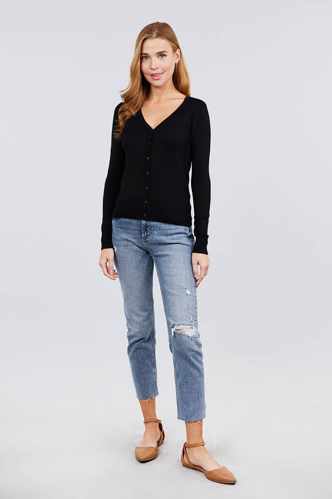 LONG SLEEVE V-NECK BUTTON DOWN SWEATER CARDIGAN