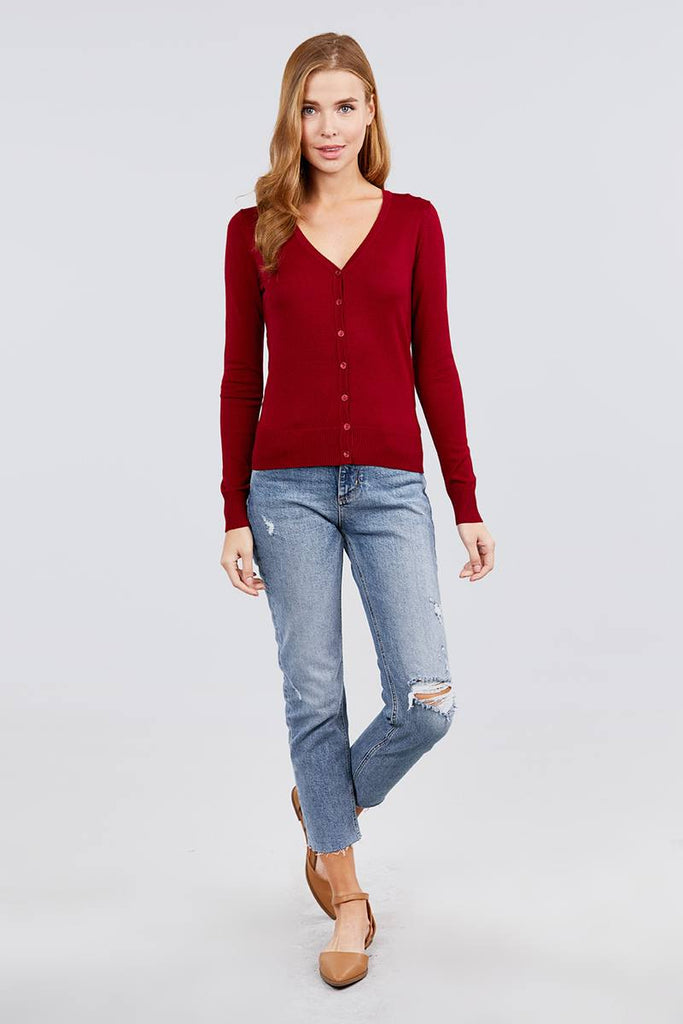 LONG SLEEVE V-NECK BUTTON DOWN SWEATER CARDIGAN