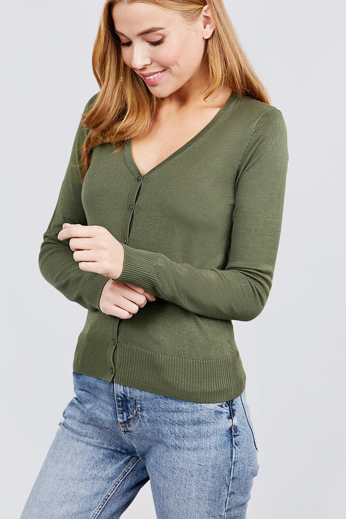 LONG SLEEVE V-NECK BUTTON DOWN SWEATER CARDIGAN