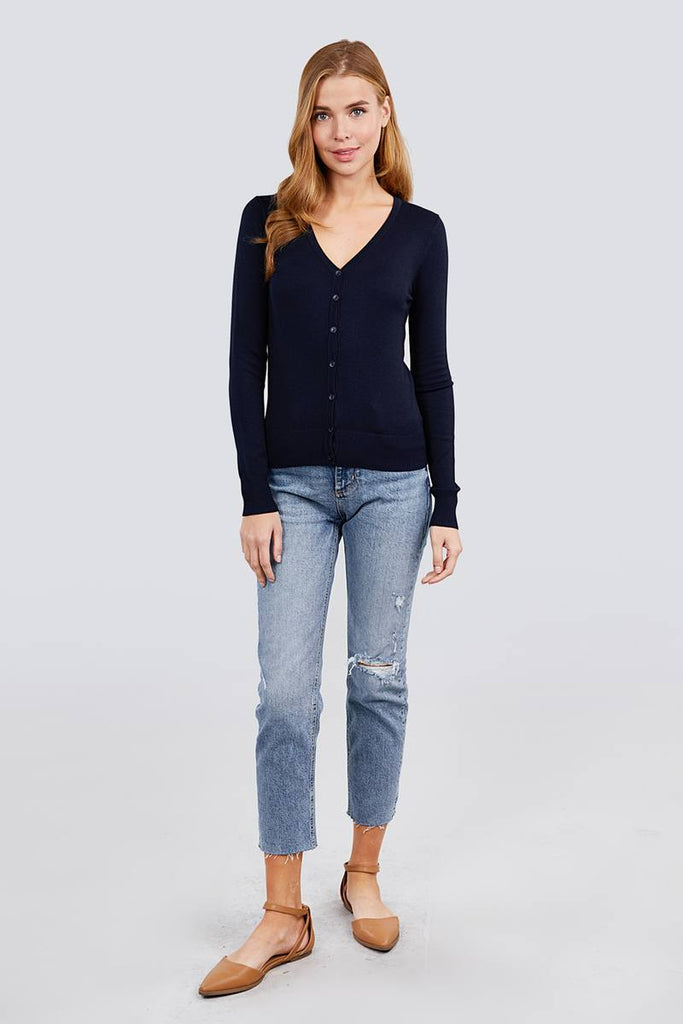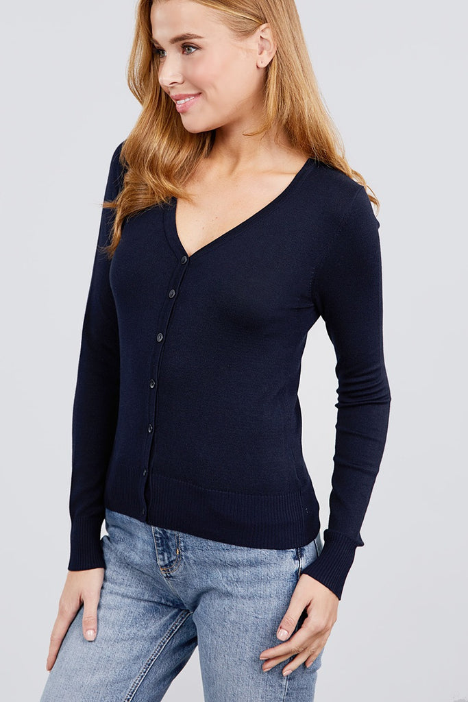 LONG SLEEVE V-NECK BUTTON DOWN SWEATER CARDIGAN