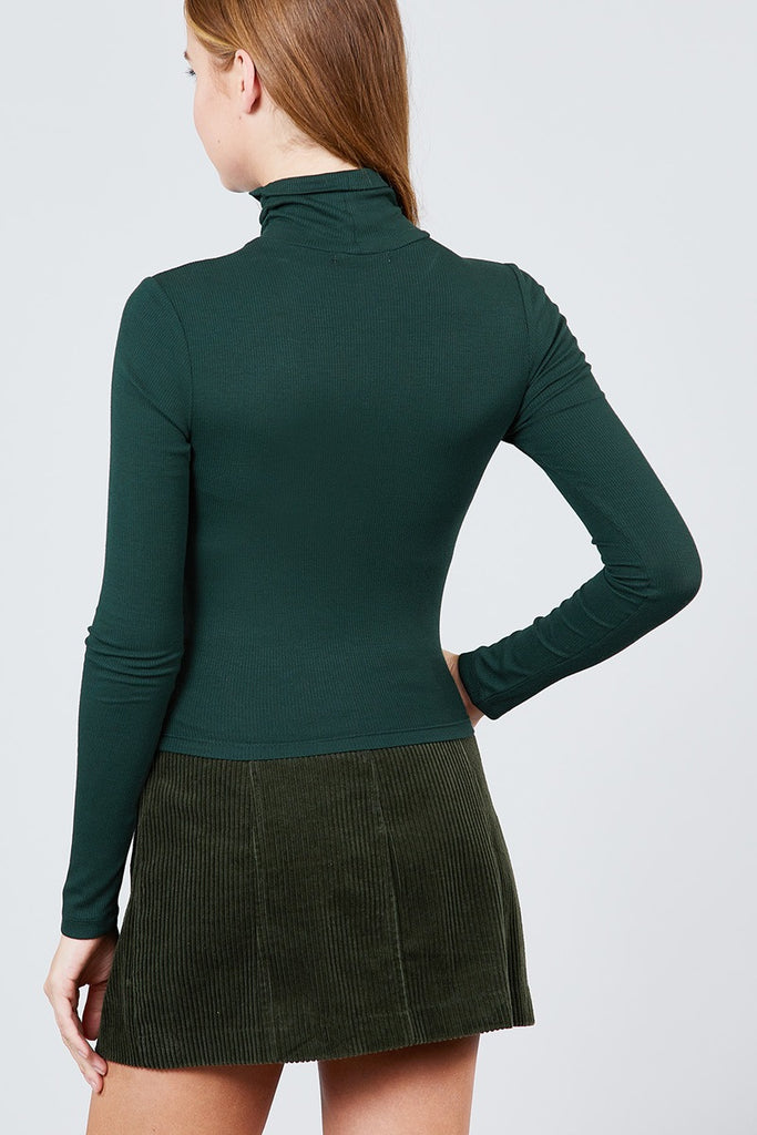 Long Sleeve Shirring Turtle Neck Rib Knit Top