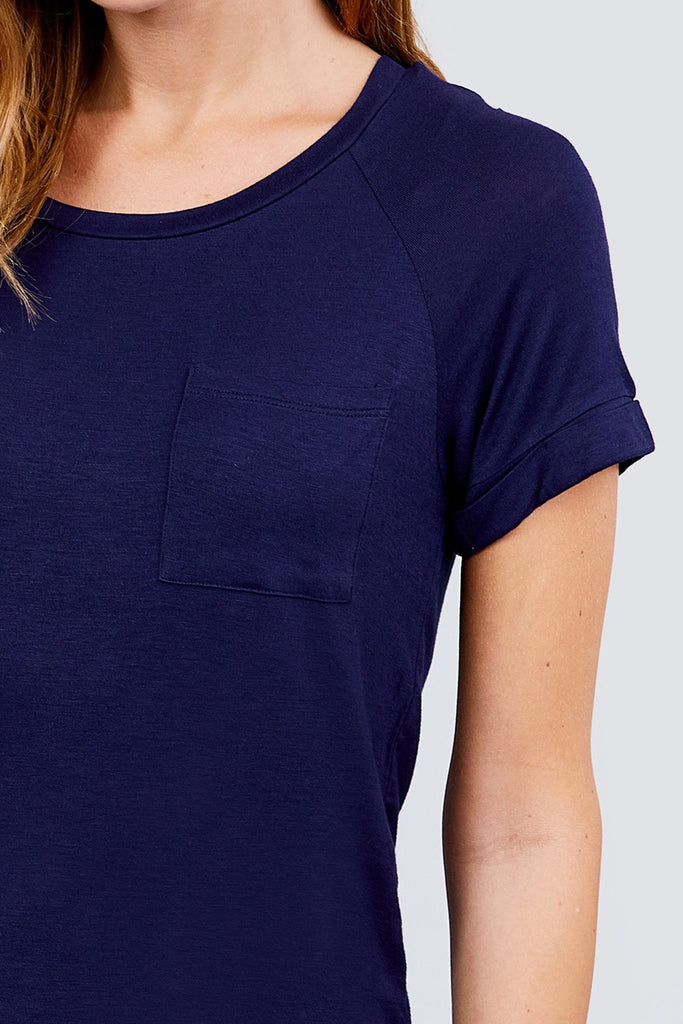 Short Raglan Sleeve Round Neck W/pocket Rayon Spandex Top