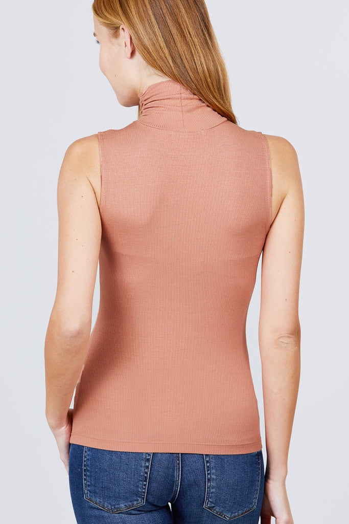 Sleeveless Shirring Turtle Neck Rib Knit Top