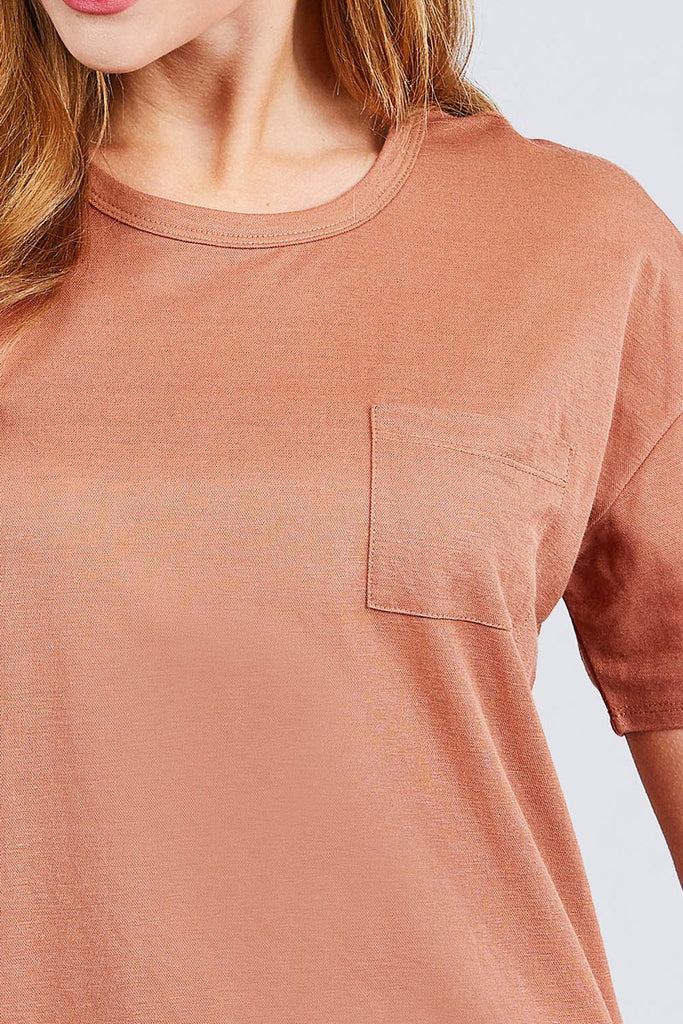 Short Sleeve Round Neck One Pocket Box Knit Top
