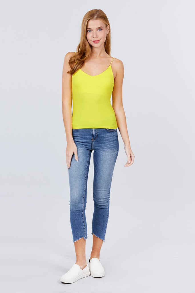 DOUBLE V-NECK 2 PLY RIB KNIT CAMI TOP