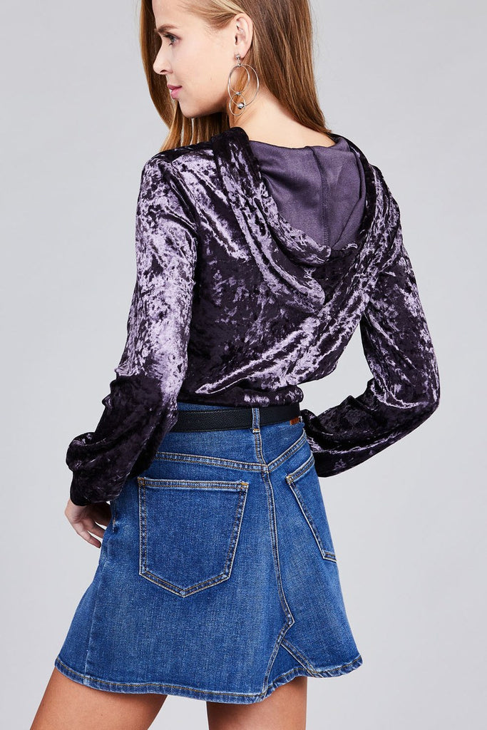Ladies fashion long sleeve hoodie w/drawstring ice velvet crop top