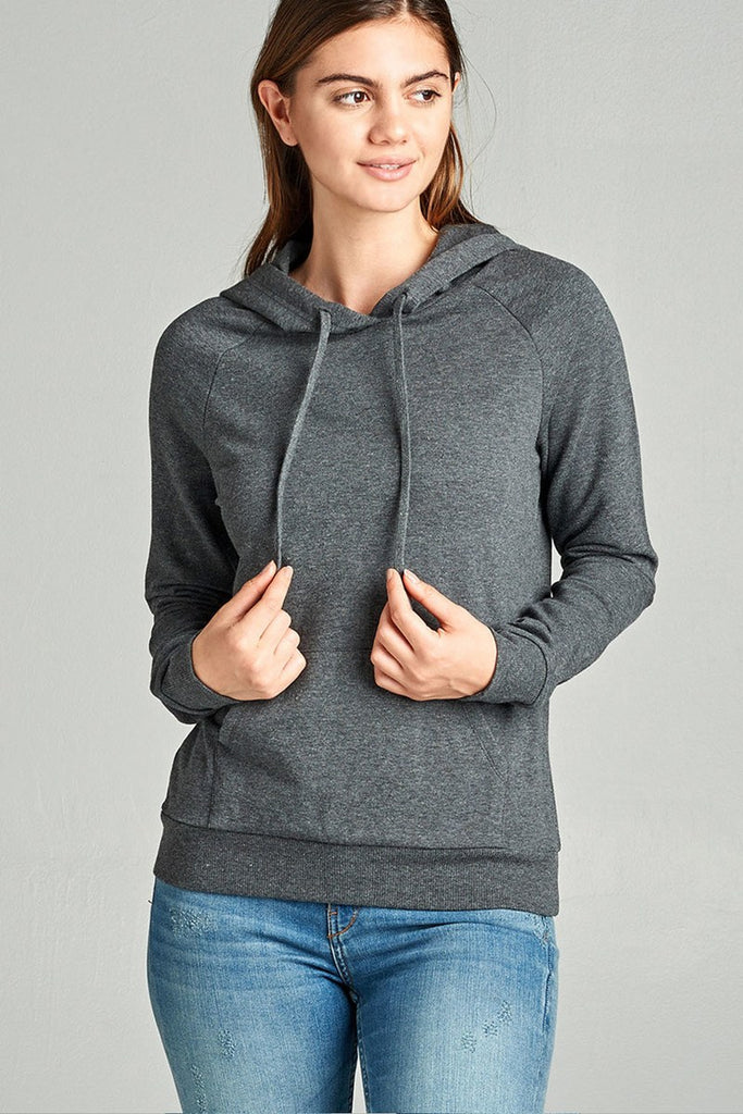 Long Sleeve Pullover French Terry Hoodie Top W/ Kangaroo Pocket