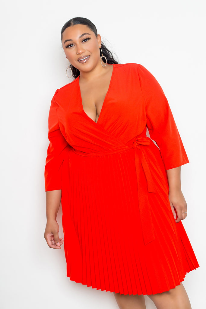 MINI SURPLICE PLEATED DRESS