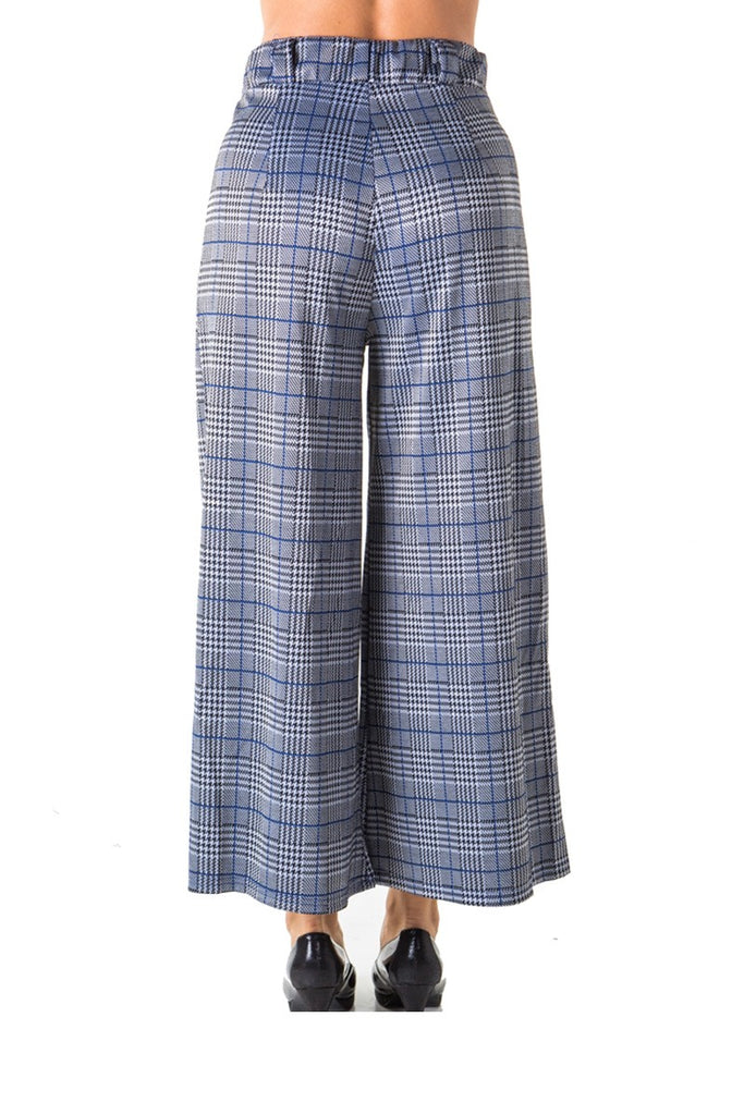 Ladies fashion casual plaid pants, high waist, wide leg & 2 front pockets