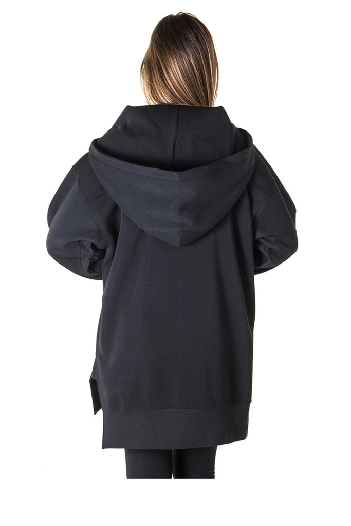 Ladies fashion fleece zip up sweatshirt oversize long hoodie outerwear jacket with applique