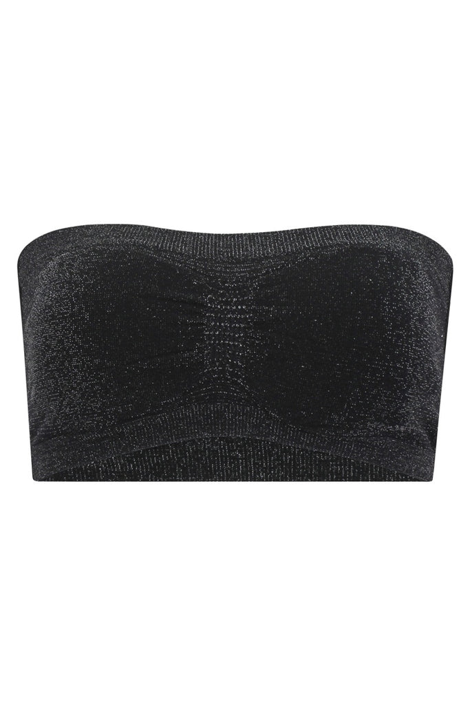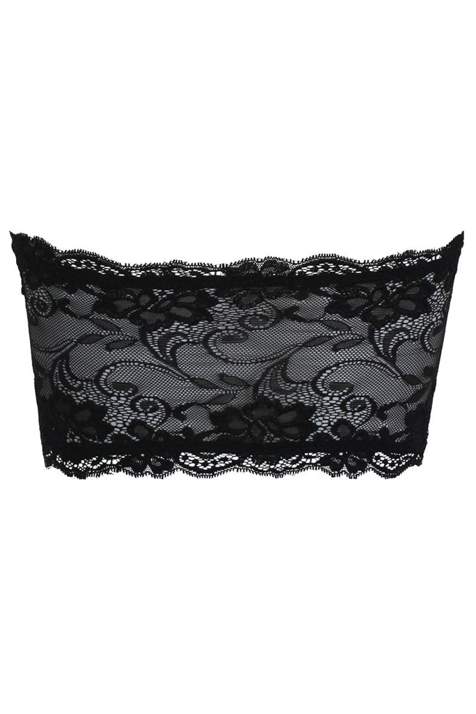 ImportedOne SizeSeamless Shimmery BandeauRemovable PadsFloral Lace Back Band85% Nylon / 15% SpandexBlackBUL