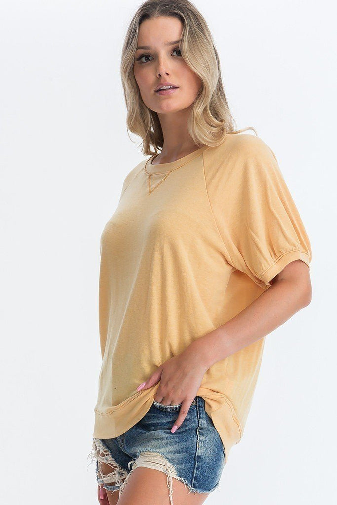 Knit top featured in a Round neckline and short sleeve with cuffed.