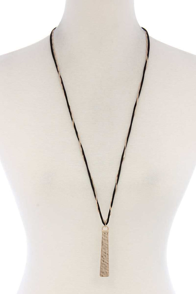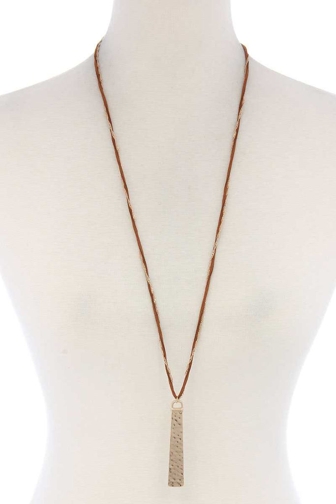 HAMMERED METAL BAR PENDANT SUEDE NECKLACE