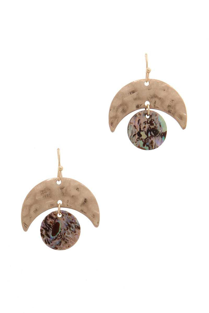 HAMMERED METAL ABALONE CIRCLE DROP EARRING