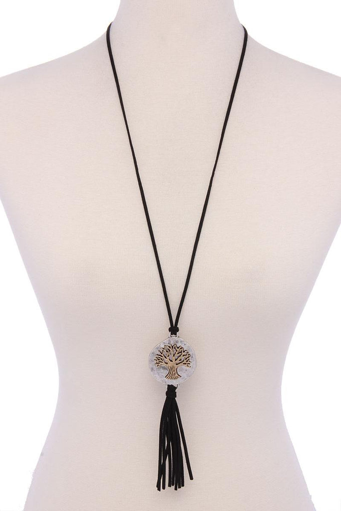 OAK TREE SUEDE TASSEL PENDANT NECKLACE