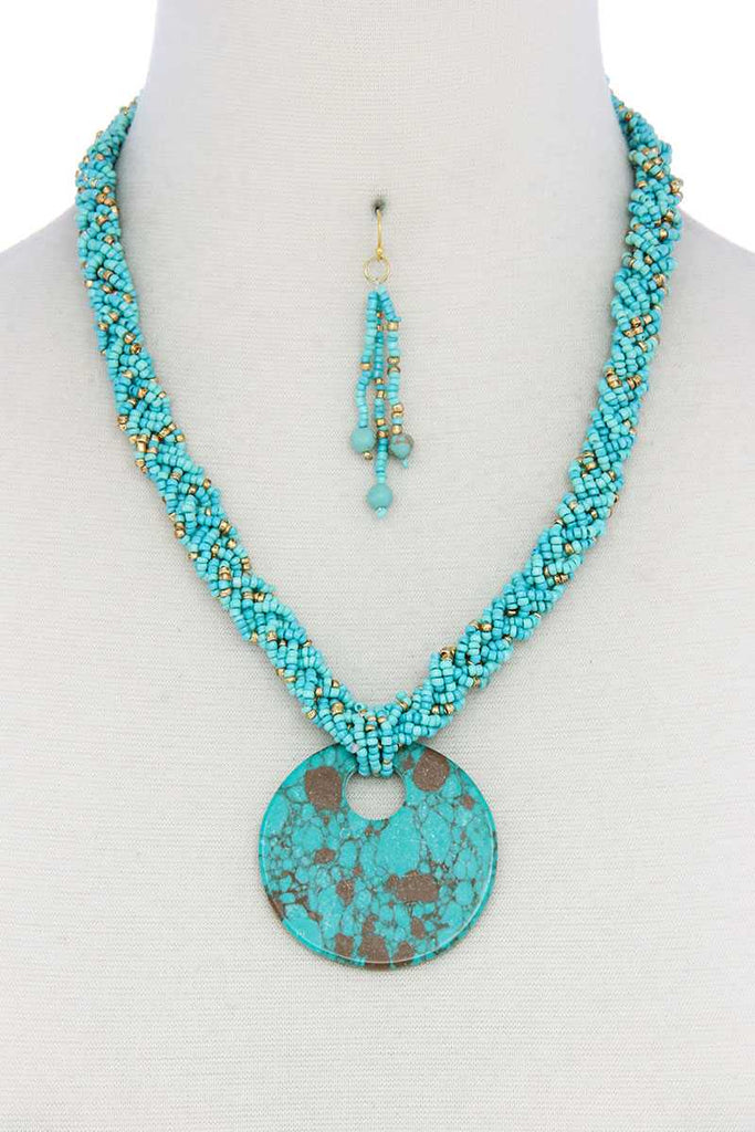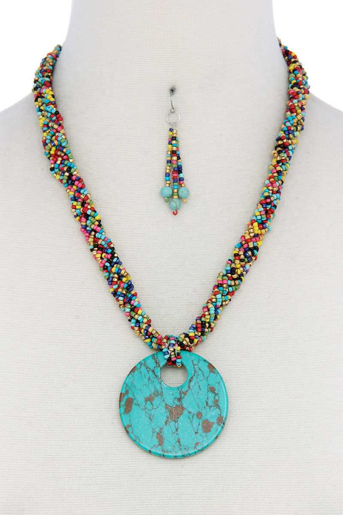 FAUX STONE PENDANT SEED BEAD NECKLACE