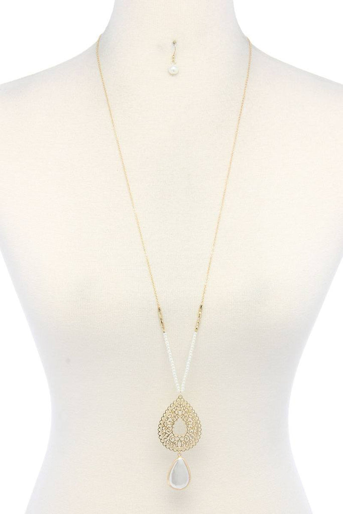 FILIGREE TEARDROP SHAPE PENDANT NECKLACE