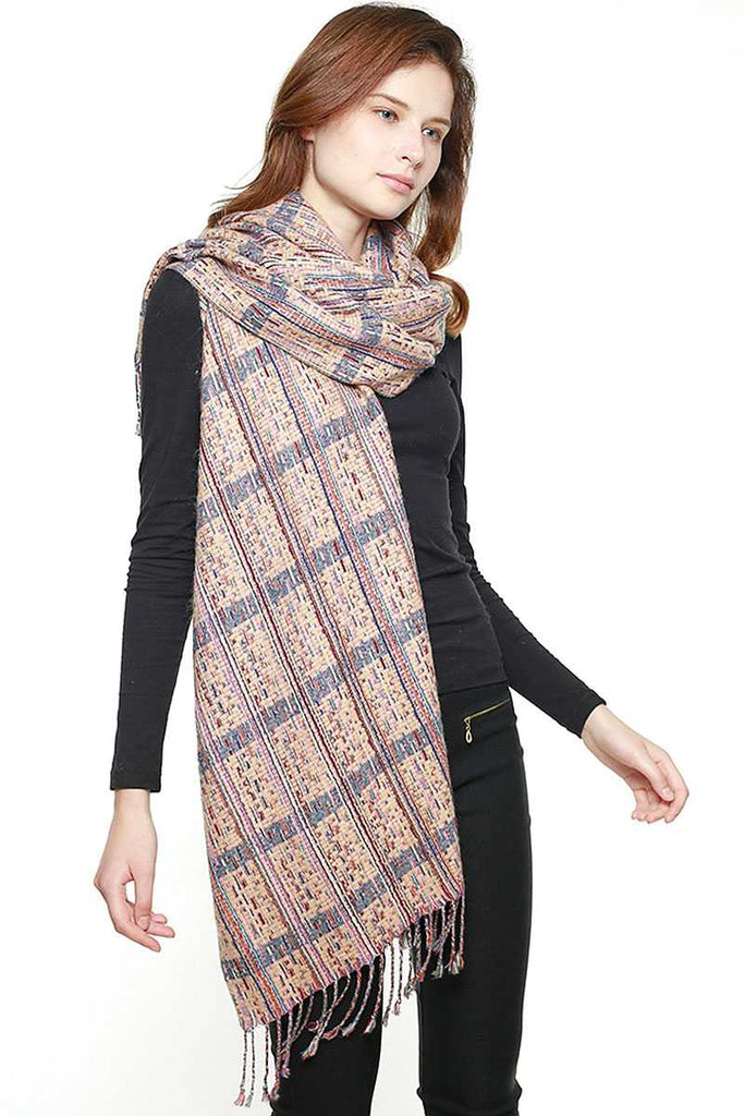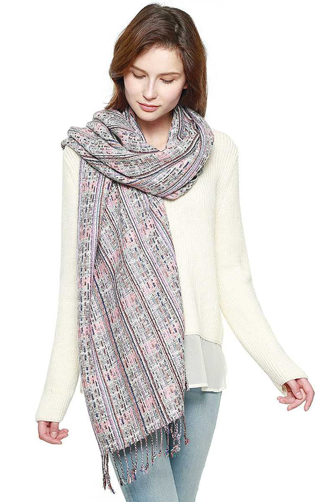 Imported MULTI STRIPED FRINGED SCARF 55% Viscose 45% Acrylic Black.Grey.Pink FBJ