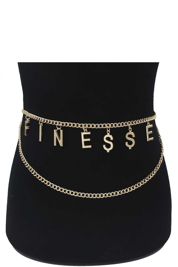 FASHION CHAIN LAYER BELT WITH FINESSE LETTER