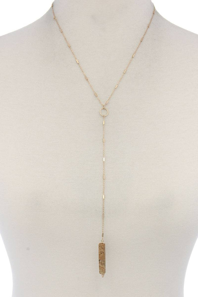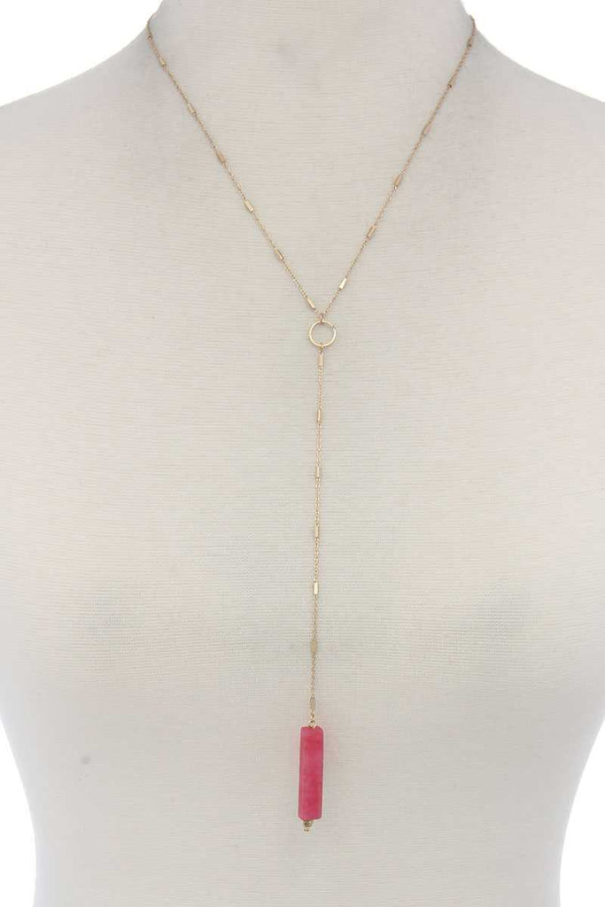 RECTANGULAR FAUX STONE Y SHAPE NECKLACE