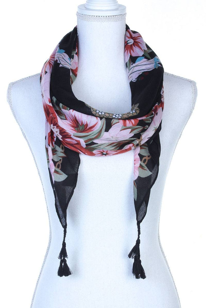 FLORAL PATTERN TASSEL OBLONG SCARF