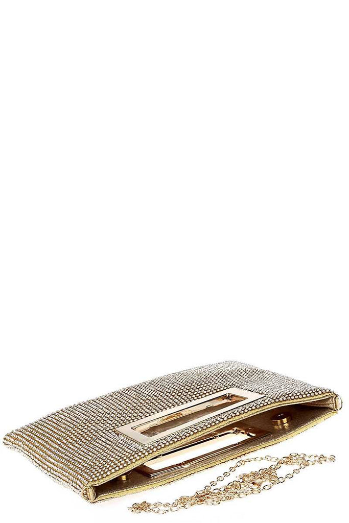 Designer Fashion Multi Rhinestone Clutch Purse With Chain