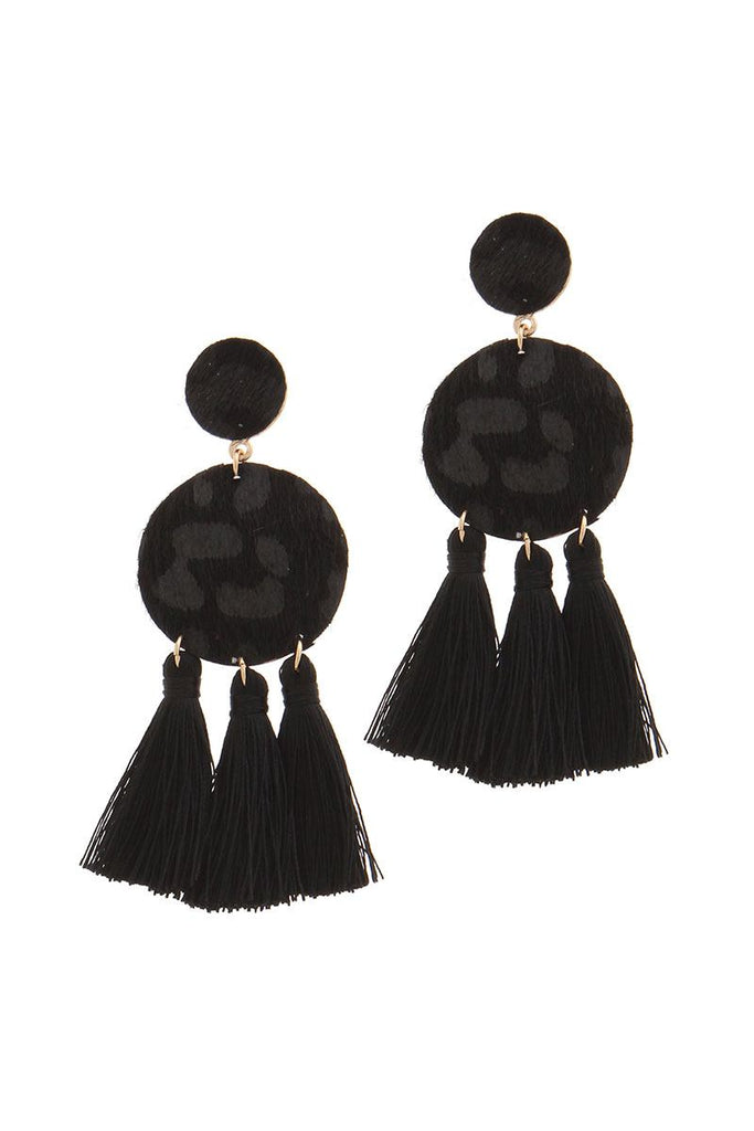 DOUBLE CIRCLE TASSEL POST DROP EARRING