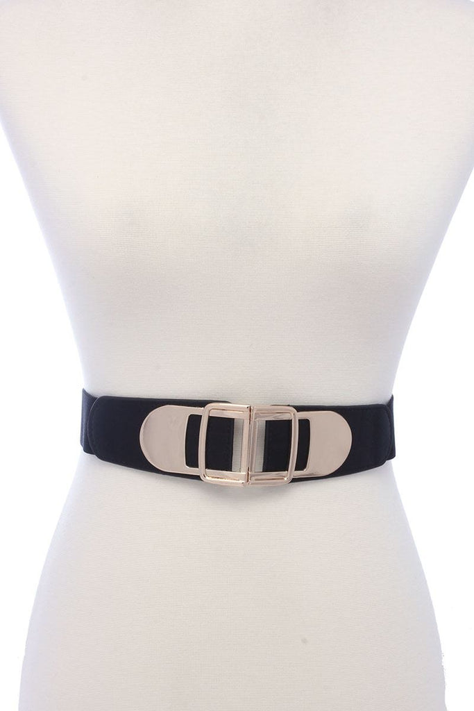 Imported METAL BUCKLE PU LEATHER ELASTIC BELT Grey.Black.Navy.Red.Camel FBJ