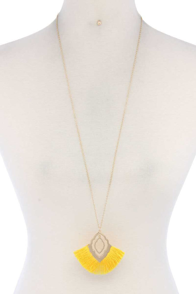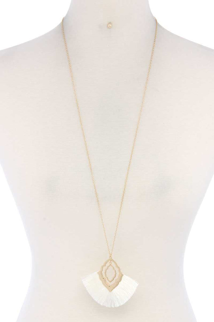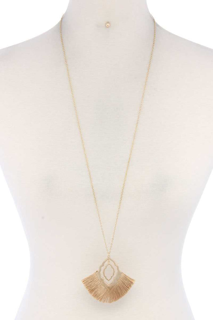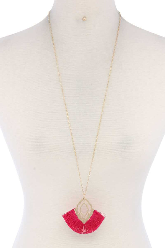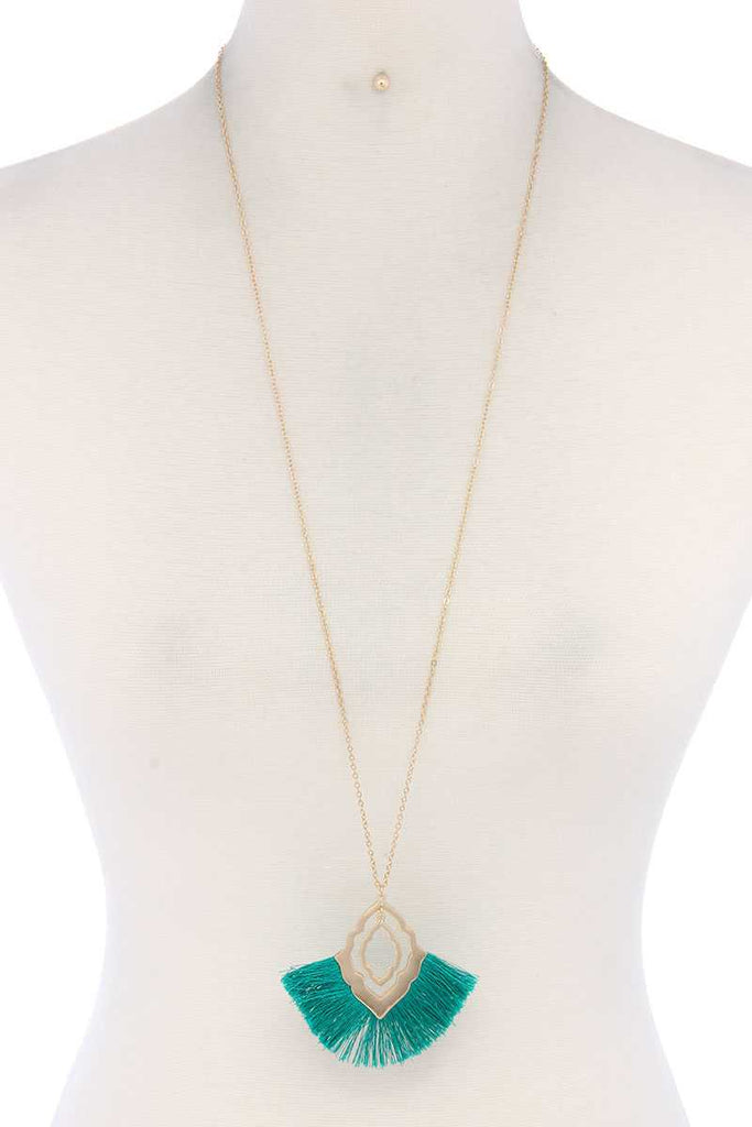 Double Moroccan Shape Fan Tassel Pendant Necklace