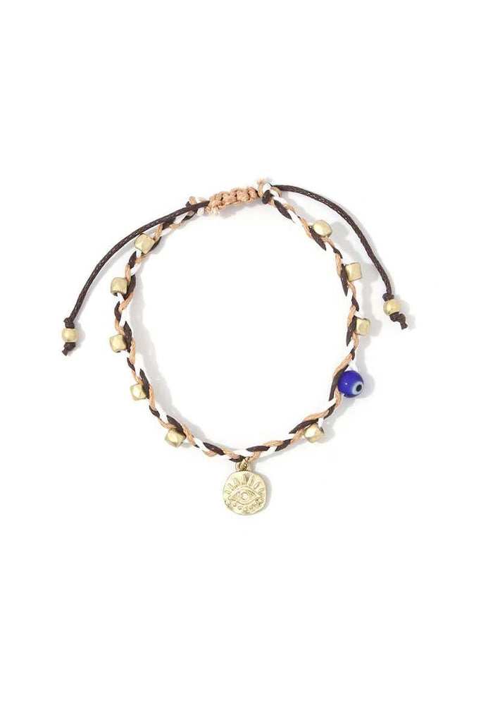 EVIL EYE COIN BEADED ADJUSTABLE BRACELET