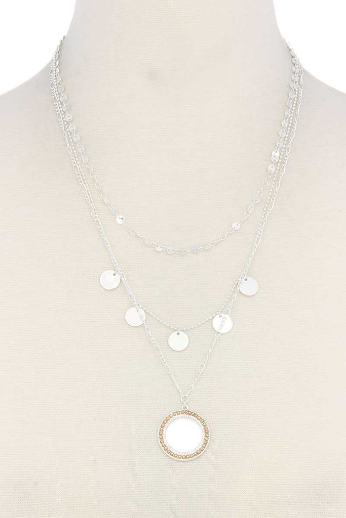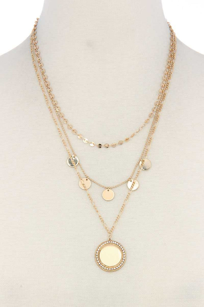 METAL CIRCLE CHARM MULTI LAYERED NECKLACE