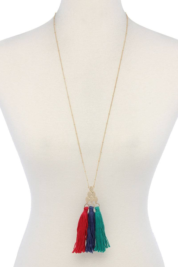 Imported MULTI COLOR TASSEL NECKLACE Multi.Brown.Orange.Green.Blue.Pink.Black FBJ