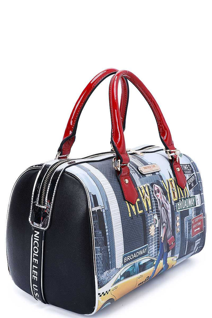 Nicole Lee New York Walk Print Boston Bag With Long Strap